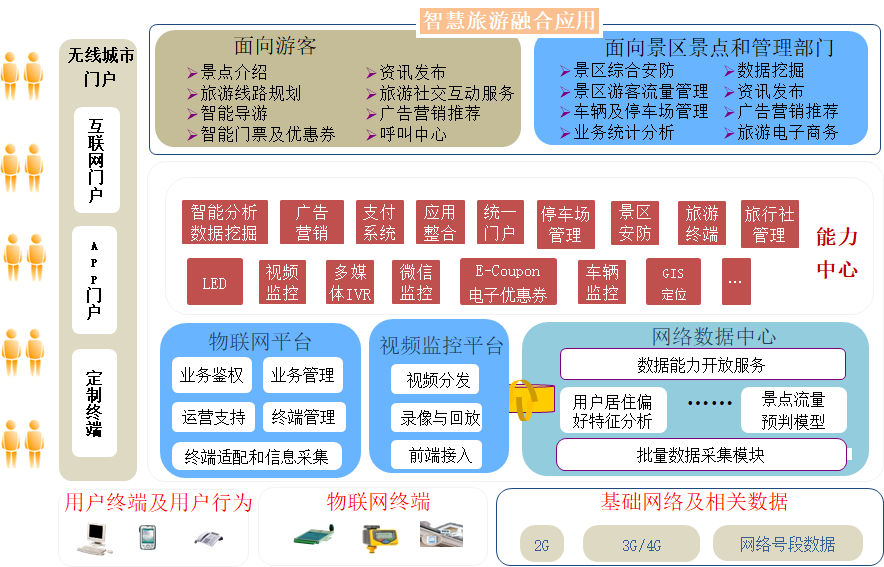 智慧旅游,就是利用移動(dòng)云計(jì)算、互聯(lián)網(wǎng)等新技術(shù),借助便攜的終端上網(wǎng)設(shè)備,主動(dòng)感知旅游相關(guān)信息,并及時(shí)安排和調(diào)整旅游計(jì)劃。實(shí)現(xiàn)游客、管理部門(mén)、旅游企業(yè)、電子商務(wù)平臺(tái)之間的數(shù)據(jù)開(kāi)放和實(shí)時(shí)共享。基于互聯(lián)網(wǎng)和移動(dòng)互聯(lián)網(wǎng)的旅游信息服務(wù),建立傳統(tǒng)渠道和微博、微信、手機(jī)APP等新媒體渠道相結(jié)合的服務(wù)體系,健全旅游公共產(chǎn)品和設(shè)施、旅游投訴和旅游救援等公共信息網(wǎng)絡(luò)服務(wù)。